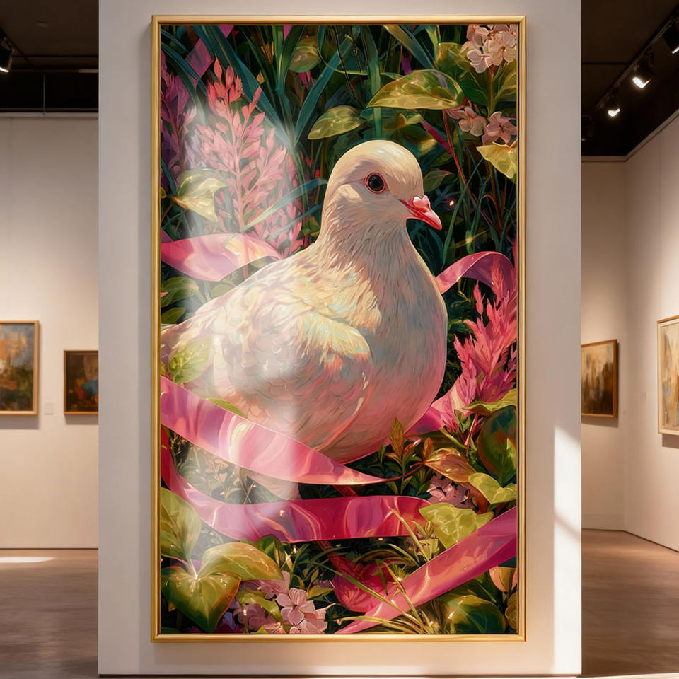 ศิลปะผนังกระจกนกพิราบสีขาวแบบกำหนดเอง-ดีไซน์ดอกไม้ธรรมชาติที่ทันสมัยสำหรับตกแต่งบ้าน