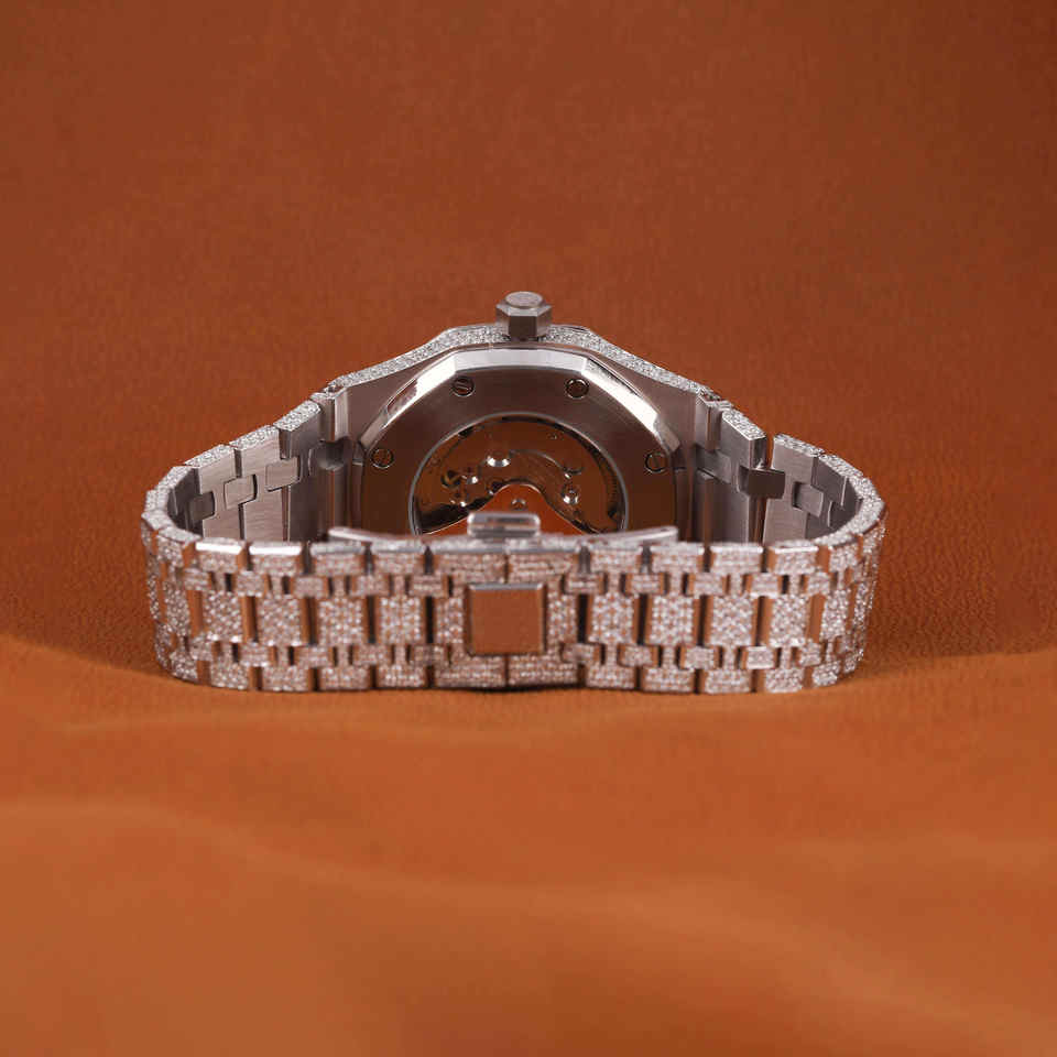 นาฬิกาแฟชั่นดิจิตอลทองเหลืองสีเหลืองประดับเพชรโมอิสซาไนต์สีขาวแบบเต็มหน้าปัด หน้าปัดแบบคลาสสิก แสดงวันที่ หน้าปัดตัวเลข กระจกหน้าปัด สำหรับทั้งชายและหญิง