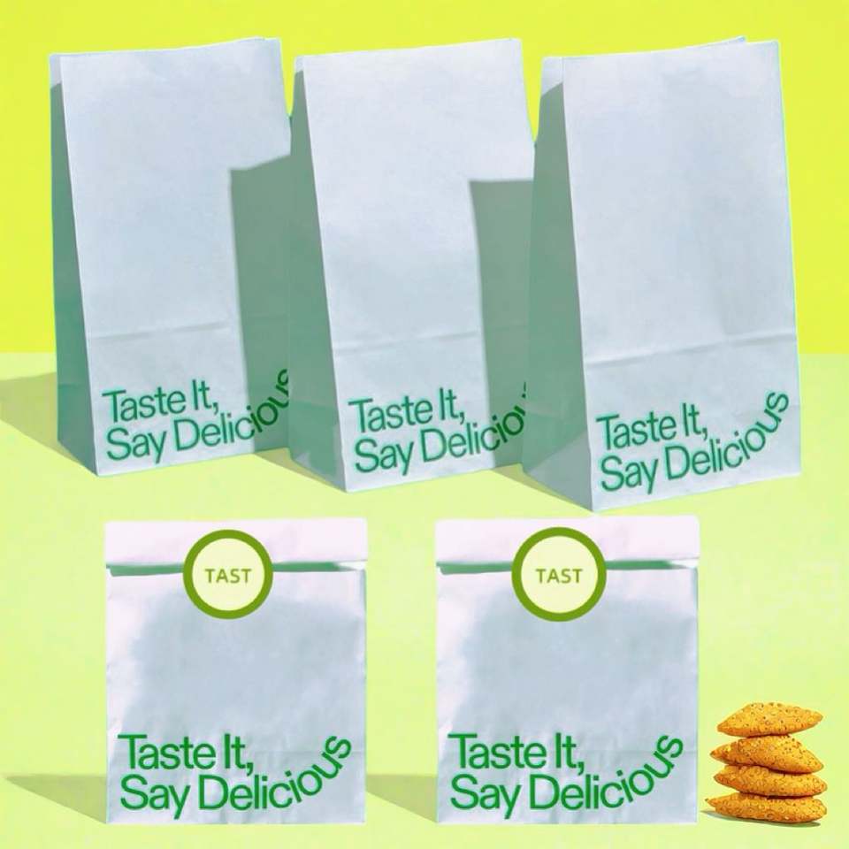ถุงกระดาษคราฟท์สีขาวแบบกำหนดเอง ถุง SOS สำหรับร้านกาแฟ ถุงกระดาษสำหรับใส่เบอร์เกอร์ พิมพ์โลโก้บนบรรจุภัณฑ์อาหารจานด่วนร้านอาหาร ถุงอาหารกลางวัน ถุงเบเกอรี่
