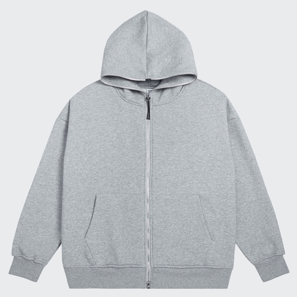 เสื้อมีฮู้ดซิปสำหรับผู้ชายสีขาวแบบกำหนดเองซิปรูดซิป3D แบบสปอร์ตลำลอง