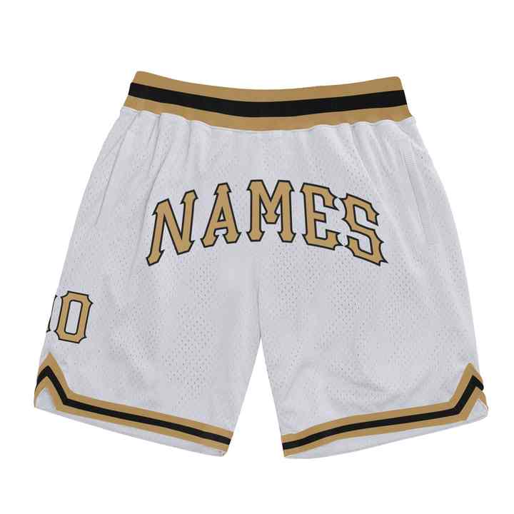 กางเกงบาสเก็ตบอลตาข่ายสีขาวแบบกำหนดเองสำหรับผู้ชาย กางเกงกีฬาลายทางสีทองสไตล์วิทยาลัย ระบายอากาศได้ดี กางเกงกีฬาสำหรับผู้ชาย ขายส่งจำนวนมาก