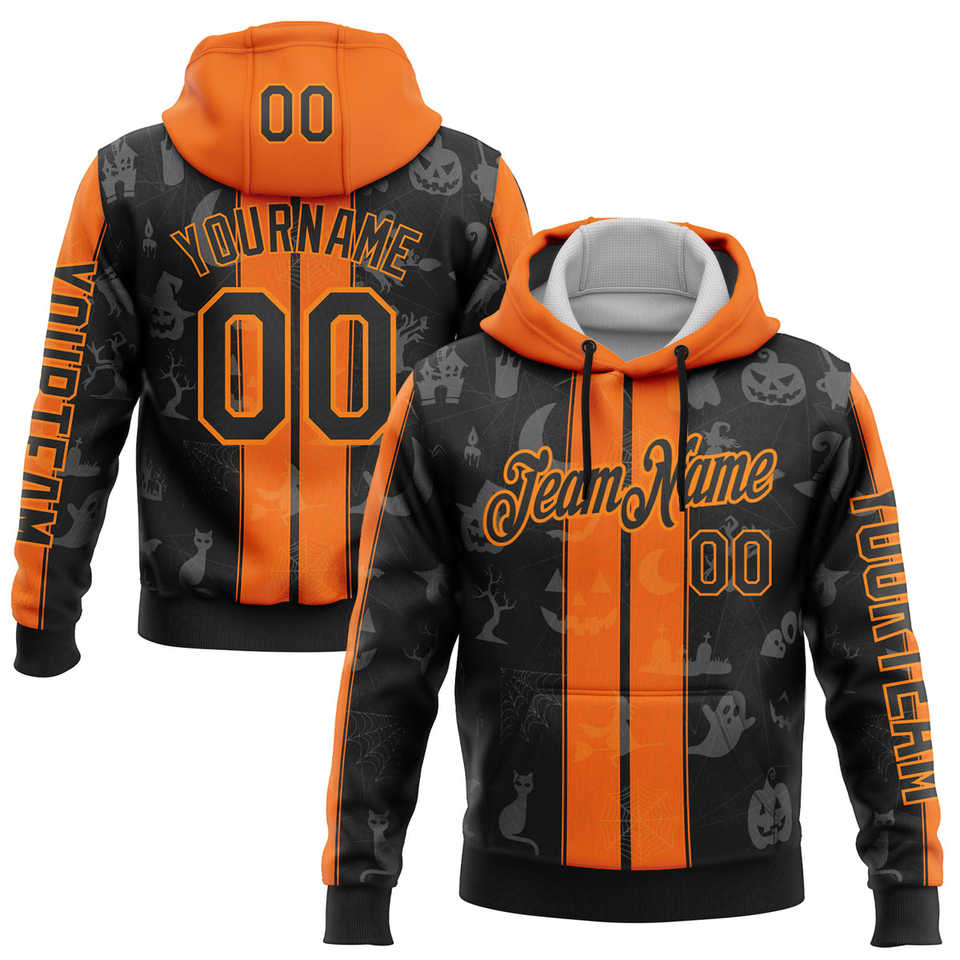 เสื้อฮู้ดกันหนาวแบบสวมหัวมีฮู้ดเสื้อกีฬาฟักทองน่ากลัว3D สีขาวส้มดำแบบกำหนดเอง