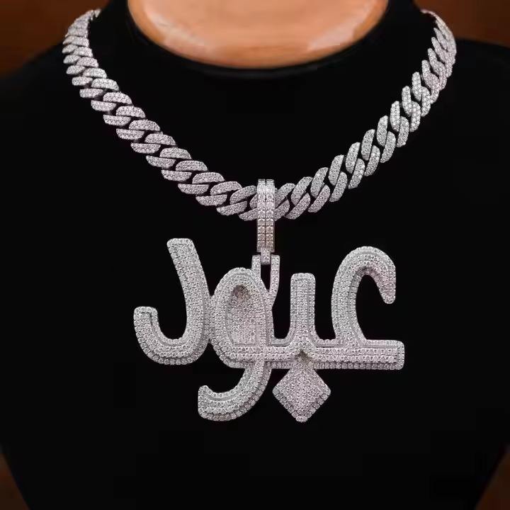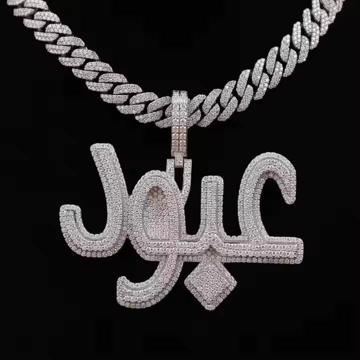 Unique exaggerated shape hip hop pendant custom white plated sterling silver bezel set moissanite iced out jewelry