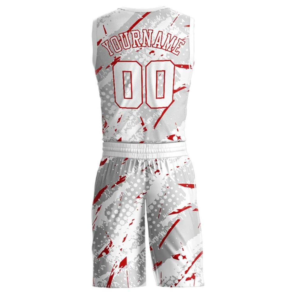 เสื้อบาสเก็ตบอลพิมพ์ลายคอเสื้อแบบถ่ายโอนความร้อน สีขาวแดง ลายเส้นสว่าง ขนาดใหญ่พิเศษ ระบายอากาศได้ดี แห้งเร็ว ดีไซน์โดดเด่น COSH
