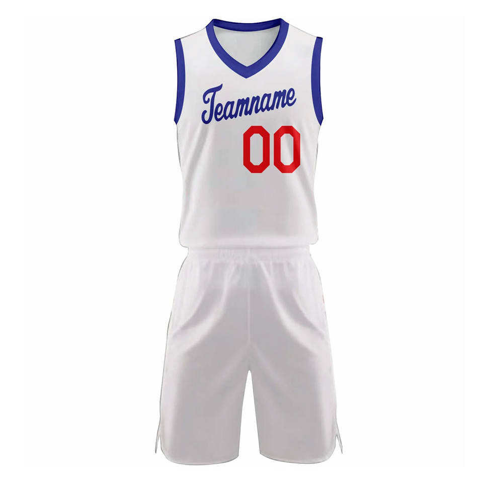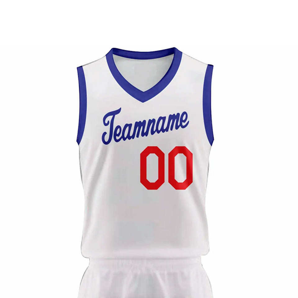 ชุดบาสเก็ตบอลสีขาว น้ำเงินรอยัล และแดง แบบสั่งทำพิเศษ ปี 2026 เสื้อเจอร์ซีย์ ปี 2025 ชุดทีมแบบซับลิเมชั่นเต็มตัว ชุดกีฬาอาชีพ ความคมชัดสูง