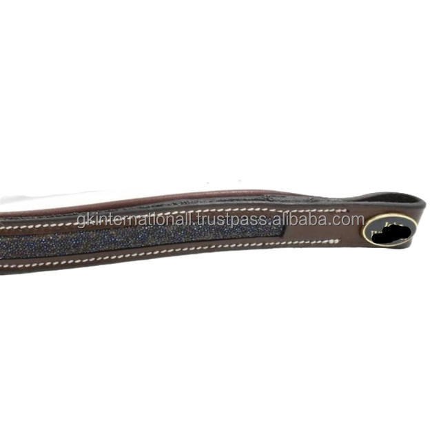 ที่คาดคิ้วหนังม้าบุนวมสีน้ำตาลเย็บสีขาวประกายคริสตัลเล็กแวววาว