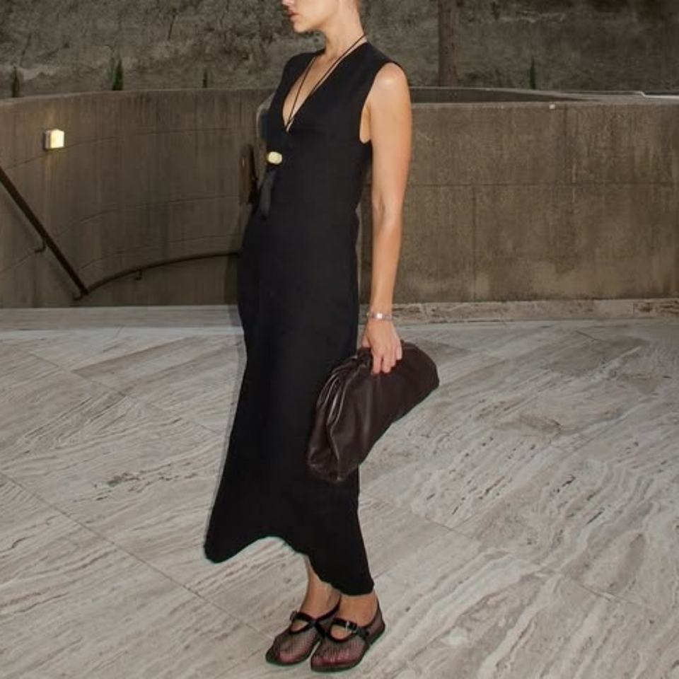 เดรสผ้าลินินลำลองทรงดินสอ คอวี แขนกุด แฟชั่นสำหรับผู้หญิง ปี 2026 รับผลิตตามสั่งขายส่ง