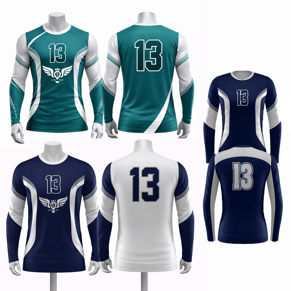 เสื้อวอลเลย์บอลแขนยาวแบบสั่งทำขายส่งปี 2026 สำหรับผู้ชาย พิมพ์ลายแบบซับลิเมชั่น ชุดทีม ระบายอากาศได้ดี แห้งเร็ว เสื้อกีฬา