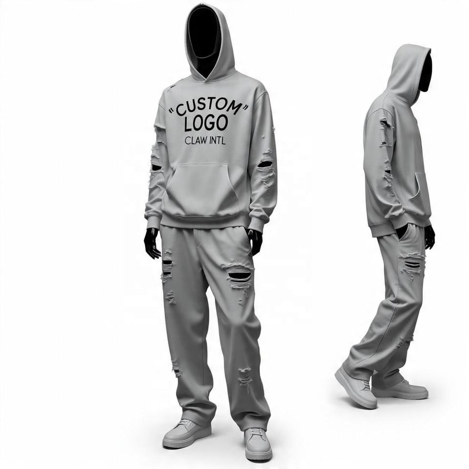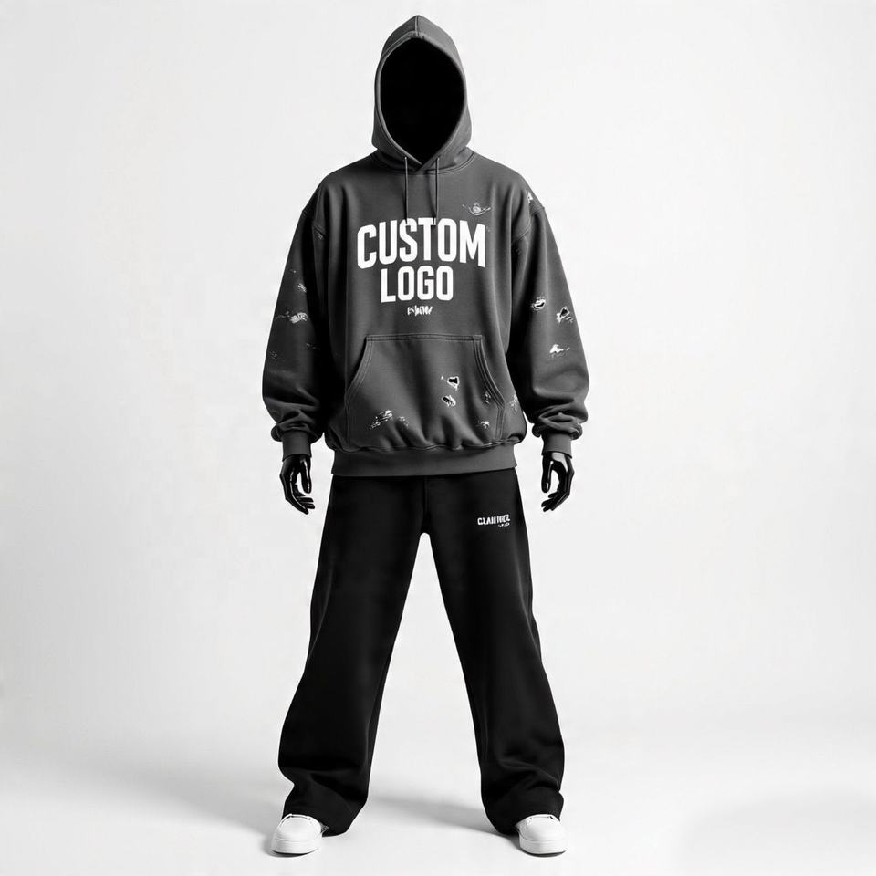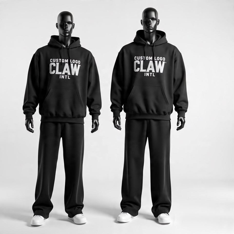 ชุดวอร์มพื้นเรียบ450 GSM สำหรับฤดูหนาวเซตเสื้อฮู้ดทรงหลวมทำจากผ้าฝ้ายเทอร์รี่ฝรั่งเศส