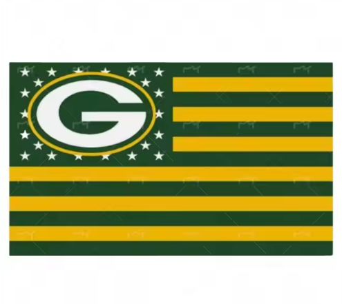 ธงชาติอเมริกันลายทางแบบกำหนดเองสำหรับขายส่ง 32 ทีม กรีนเบย์ แพคเกอร์ส ขนาด 90*150 ซม. สำหรับงานปาร์ตี้เฉลิมฉลองในร่ม/กลางแจ้ง