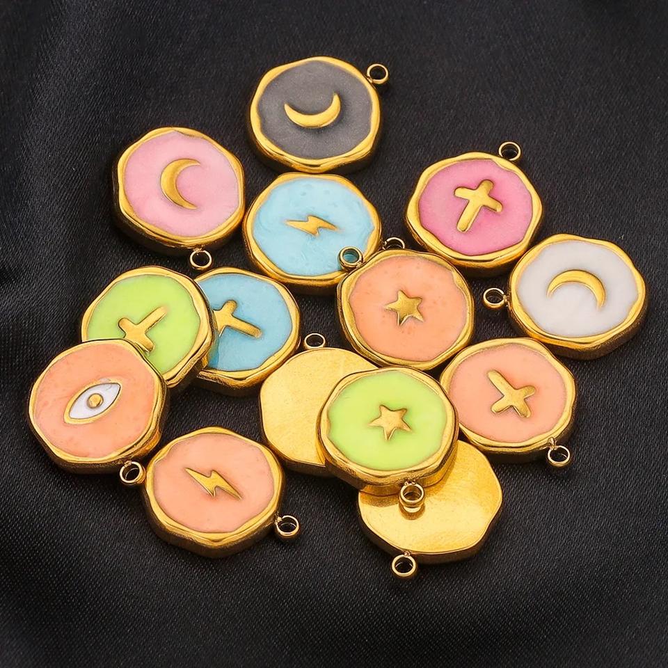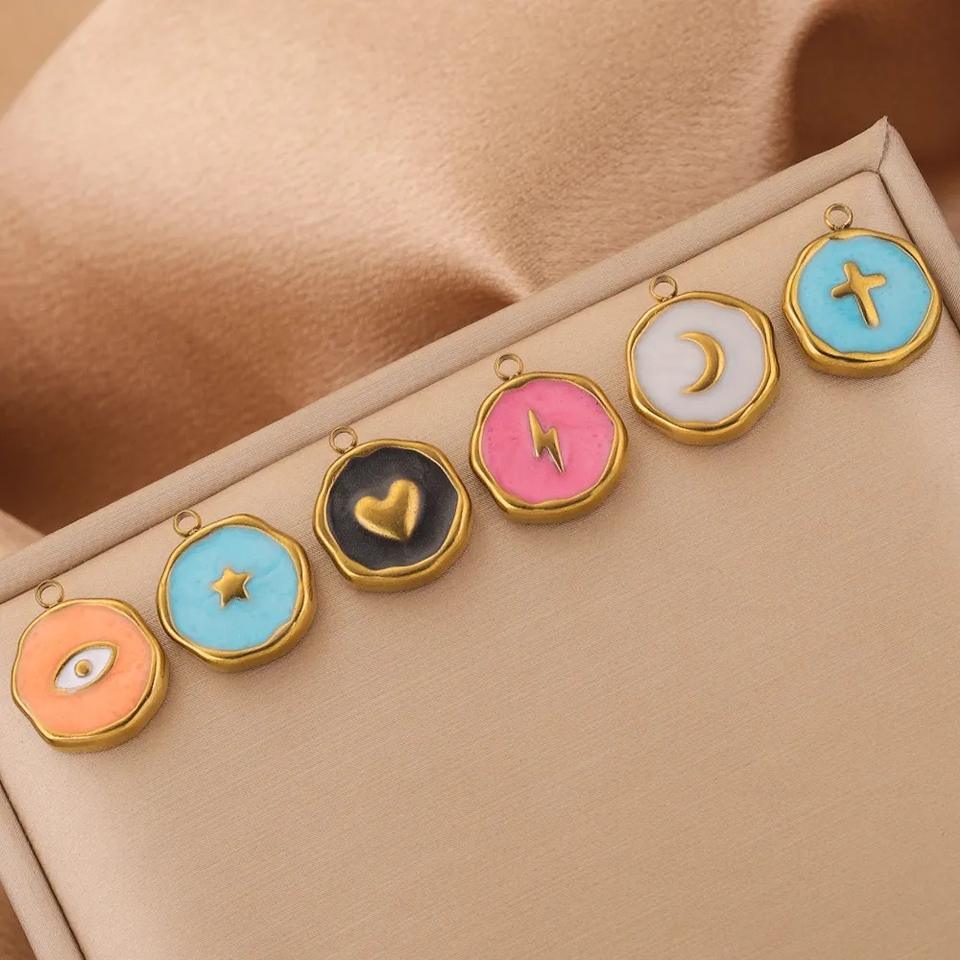 จี้สเตนเลสเคลือบรูปหัวใจดาวและดวงจันทร์ทำจากสเตนเลสแบบทำมือออกแบบได้ตามต้องการ