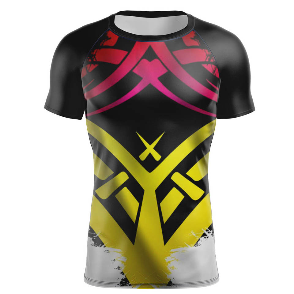 เสื้อยืดออกกำลังกายผู้ชายแบบรัดรูปสั่งทำขายส่ง เนื้อผ้าโพลีเอสเตอร์ผสมสแปนเด็กซ์ เสื้อฟิตเนสแขนสั้น
