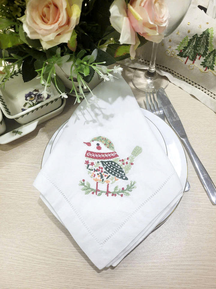 ผ้าเช็ดปากปักลายนกคริสต์มาสผ้าฝ้ายสั่งทำขายส่ง ผ้าเช็ดปากเย็บริมสำหรับงานเลี้ยงอาหารค่ำ ใช้ในบ้าน ร้านอาหาร และเทศกาลต่างๆ