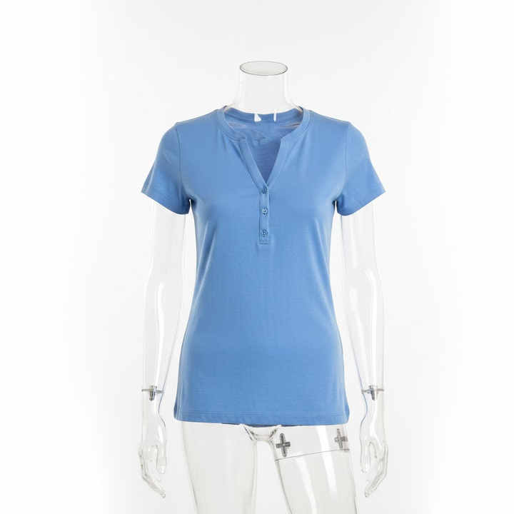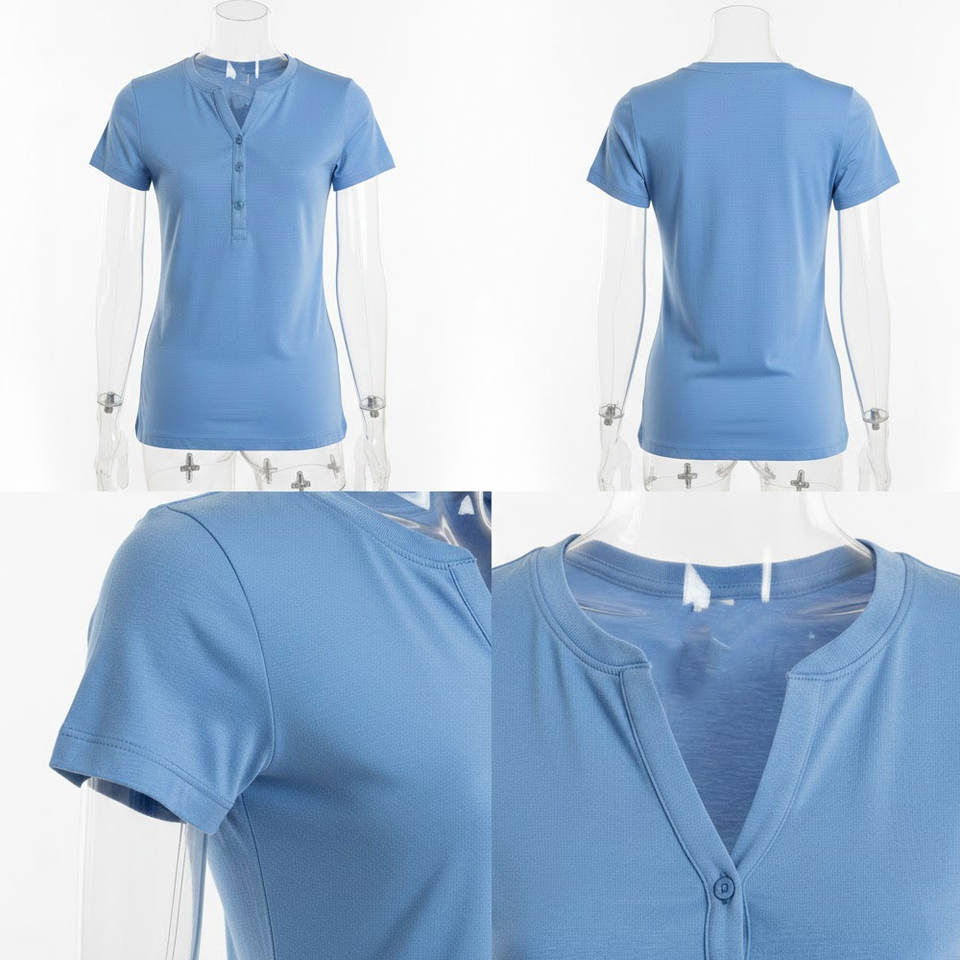 เสื้อยืดคอกลมแบบเฮนลีย์ ดีไซน์สั่งทำขายส่ง ผลิตจากผ้าฝ้ายระบายอากาศ เสื้อยืดแขนสั้นสำหรับผู้หญิง