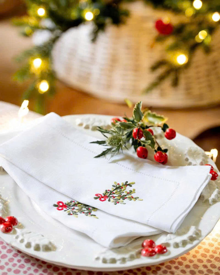 ผ้าเช็ดปากปักลายมิสเซิลโทแบบสั่งทำขายส่ง ผ้าเช็ดปากผ้าฝ้ายสำหรับงานเลี้ยงอาหารค่ำ ผ้าเช็ดปากเย็บริม ผ้าเช็ดปากสำหรับใช้ในบ้าน โรงแรม และวันหยุด