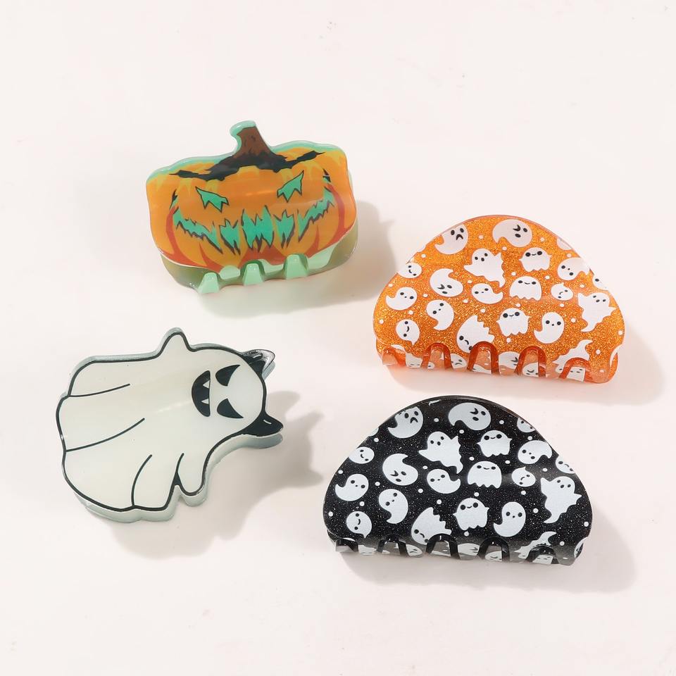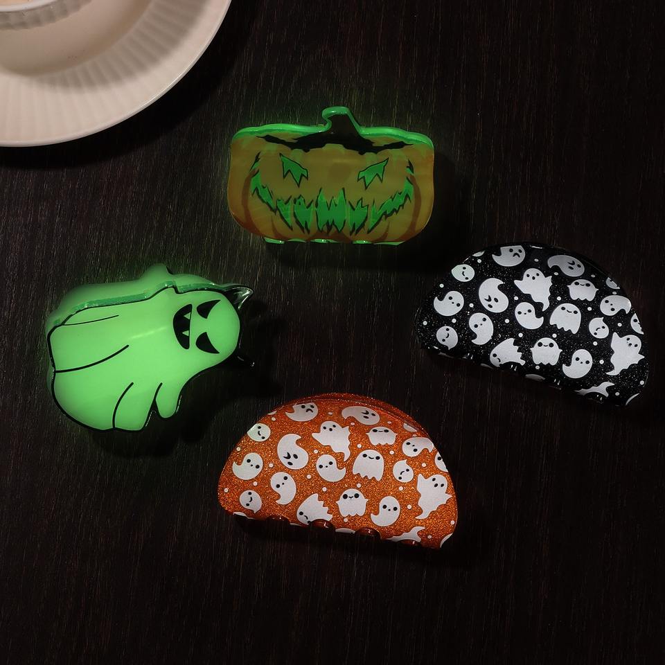 กิ๊บหนีบผมรูปผีฮาโลวีนสำหรับผู้หญิงขนาดใหญ่กิ๊บหนีบผมรูปฟักทองเรืองแสงของผู้หญิง