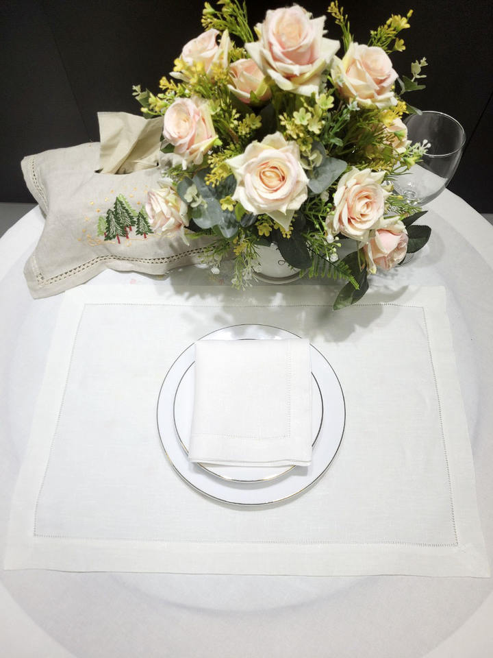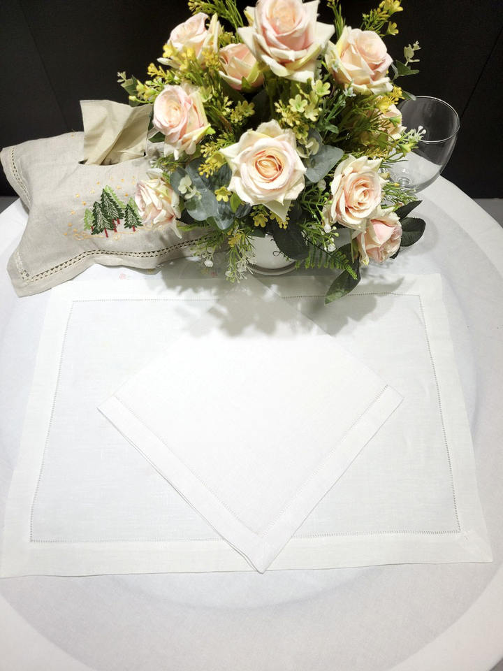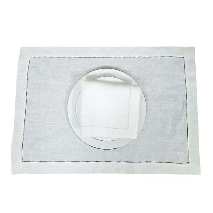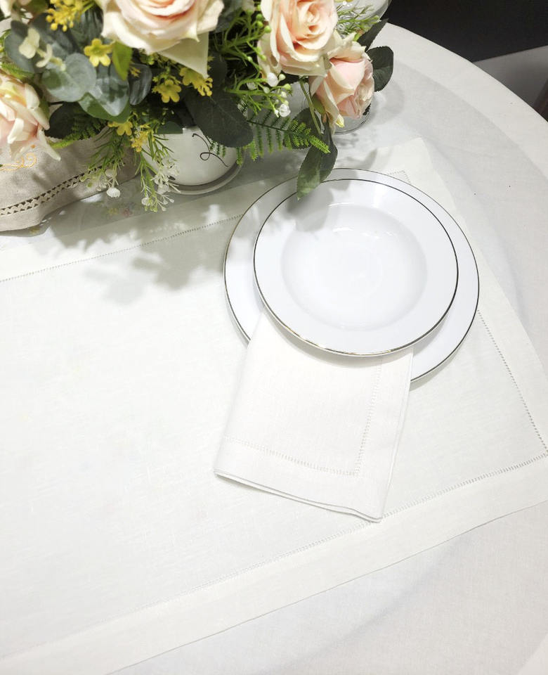 ชุดแผ่นรองจานและผ้าเช็ดปากผ้าลินินสีขาวแบบซักได้ชุดผ้าปูและผ้าเช็ดปาก
