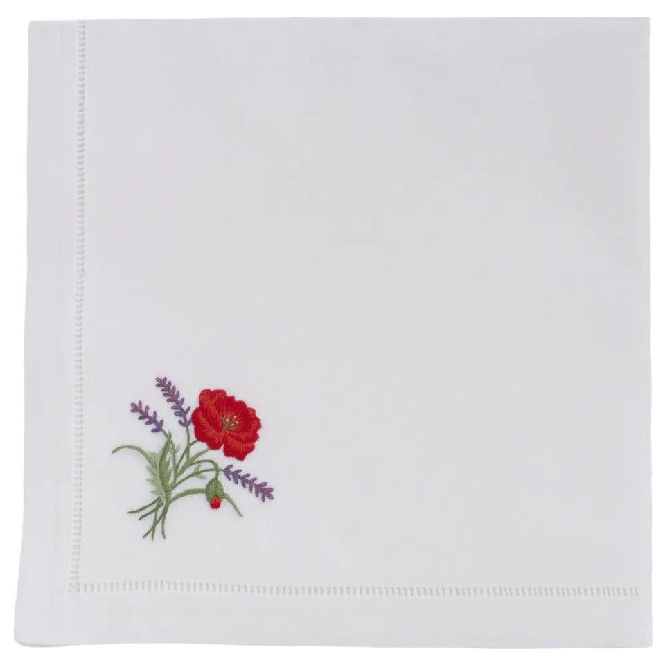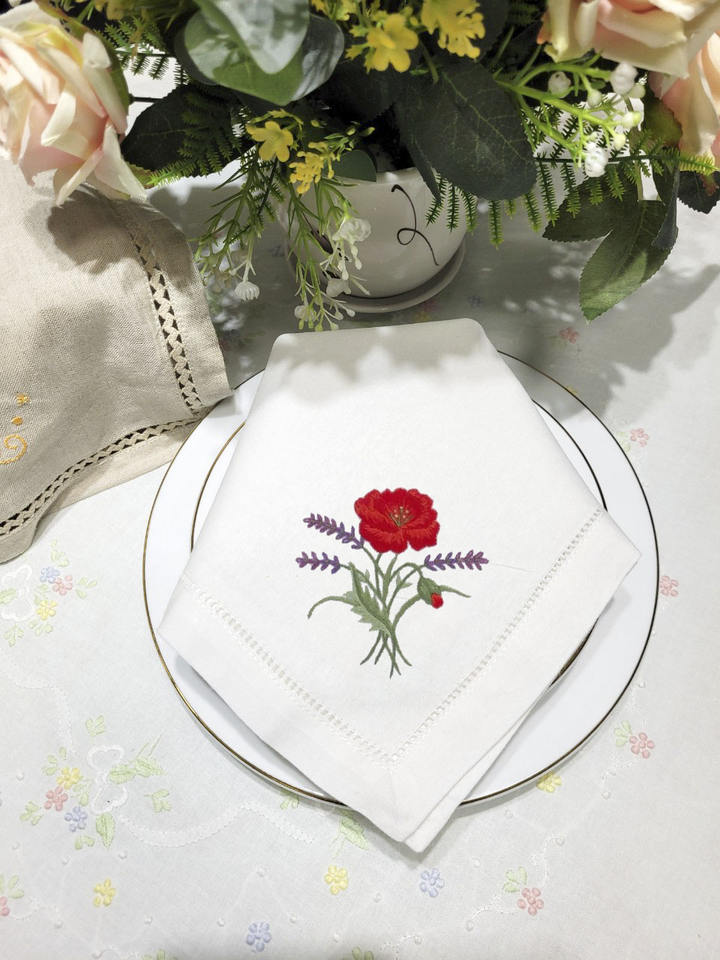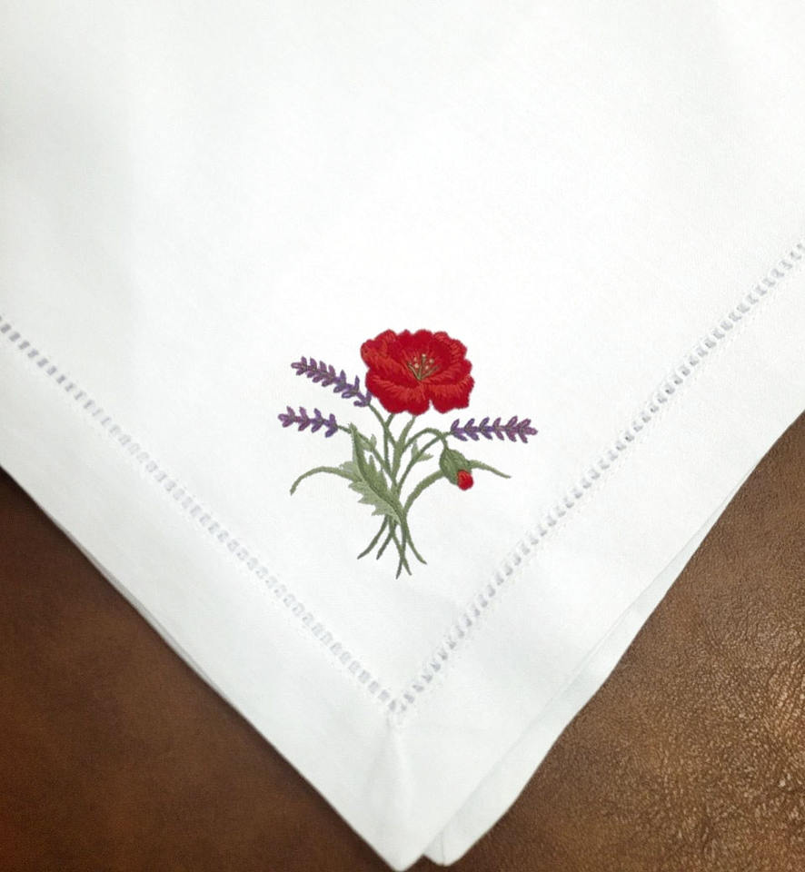 ขายส่งที่กําหนดเองผ้าเช็ดปากโต๊ะ Hemstitch การออกแบบดอกไม้ที่สวยงาม 100% เย็บปักถักร้อยผ้าฝ้ายสีขาวสําหรับกิจกรรมบ้านโรงแรม