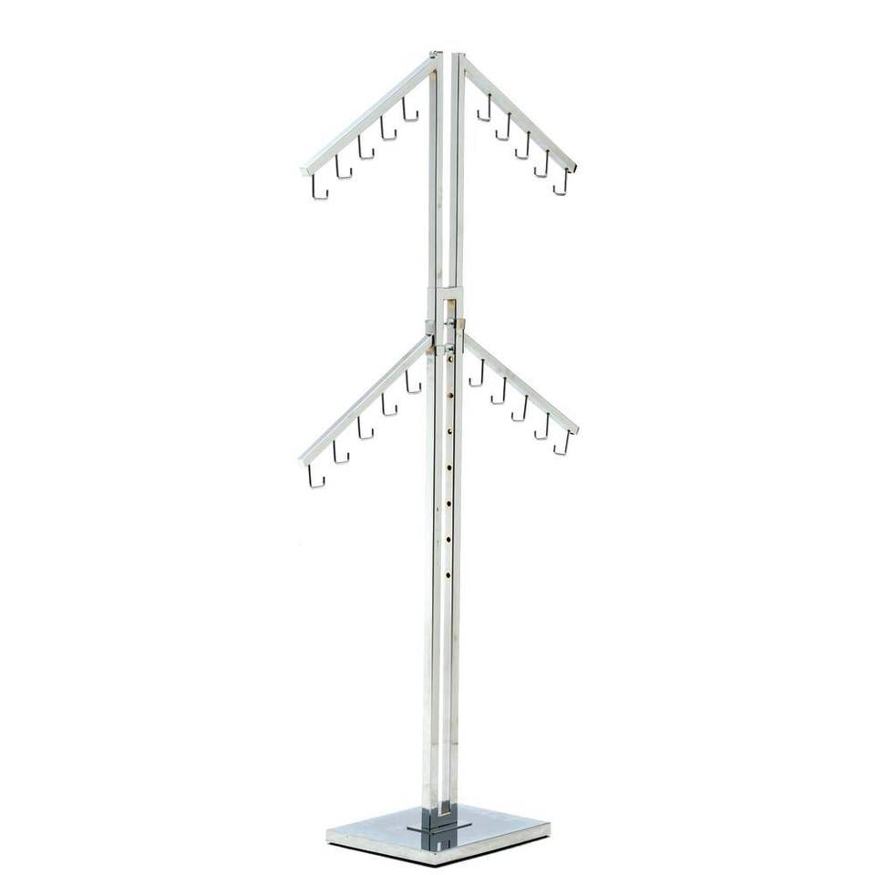ราวแขวนเสื้อผ้าเหล็ก 2 แขน พร้อมตะขอรูปตัว J สำหรับร้านขายเสื้อผ้าสตรี โรงงานผลิตเหล็กขายส่งตามสั่ง
