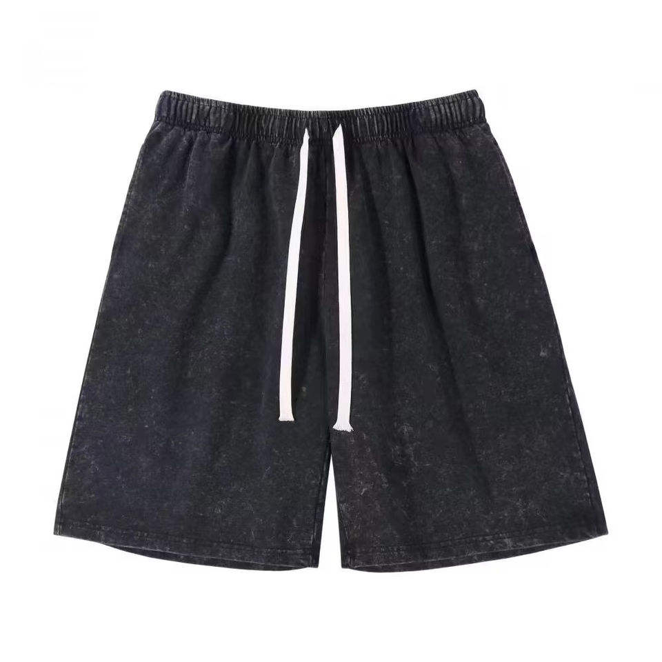 ชุดเซ็ตเสื้อยืดและกางเกงขาสั้นผ้าฝ้าย 2 ชิ้นสำหรับผู้ชาย สไตล์ลำลอง ล้างสีแบบแอซิดวอช สำหรับฤดูร้อน รับผลิตตามสั่ง ขายส่ง