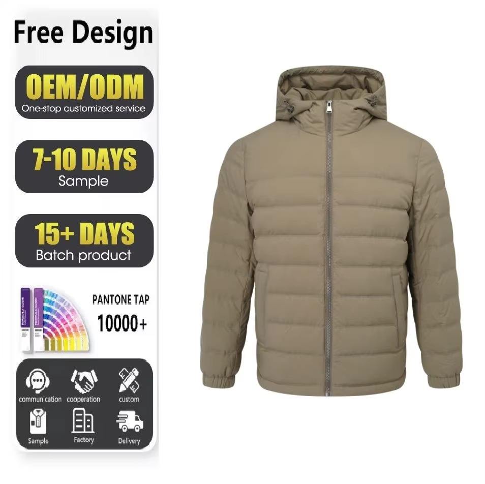 เสื้อแจ็คเก็ตพัฟเฟอร์มีฮู้ดสำหรับผู้ชาย แบบสั่งทำขายส่ง น้ำหนักเบา บุใยสังเคราะห์ เสื้อคลุมกันหนาว สไตล์สตรีทแวร์ พร้อมโลโก้สั่งทำ ดีไซน์ใหม่