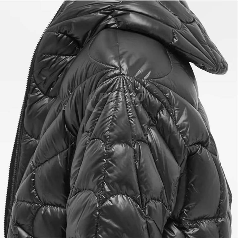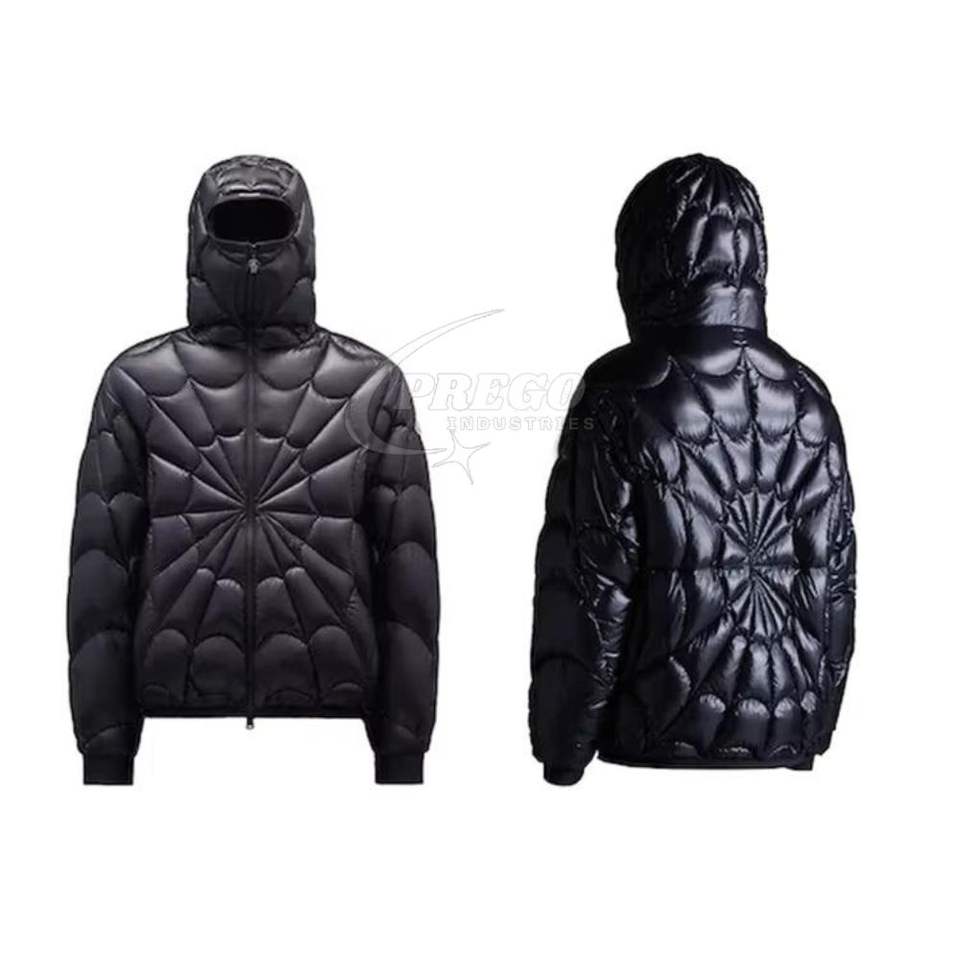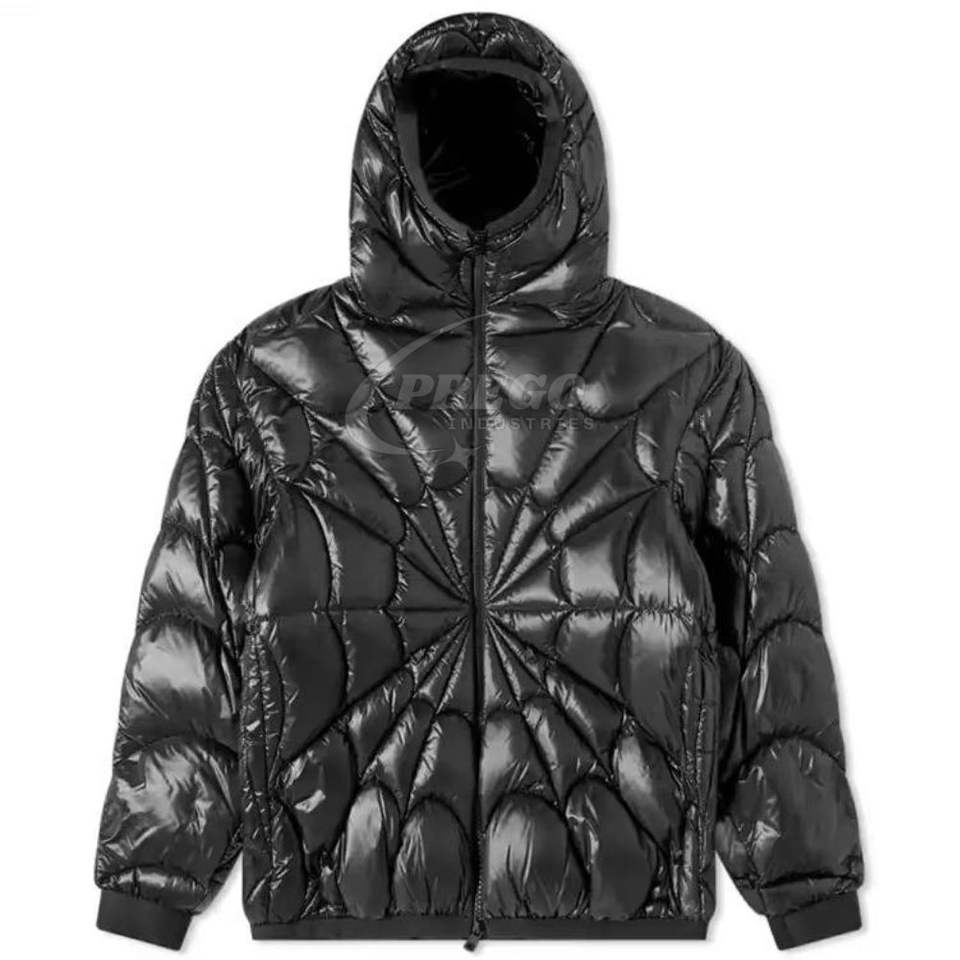เสื้อแจ็คเก็ตพัฟเฟอร์แบบมีฮู้ดสำหรับผู้ชายสั่งทำขายส่ง ผ้าไนลอนเคลือบเงาแบบเย็บติดกัน เสื้อผ้าฤดูหนาวสไตล์สตรีทแวร์ทันสมัย พร้อมโลโก้สั่งทำ ปี 2026