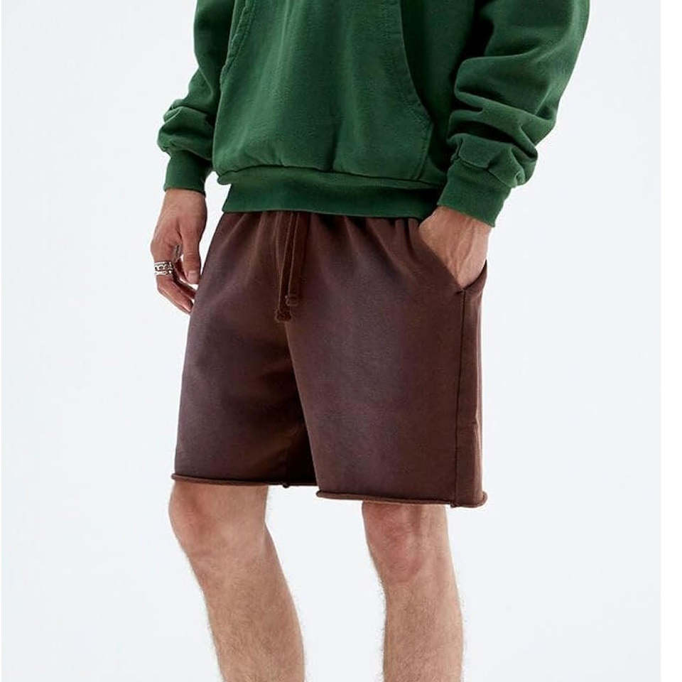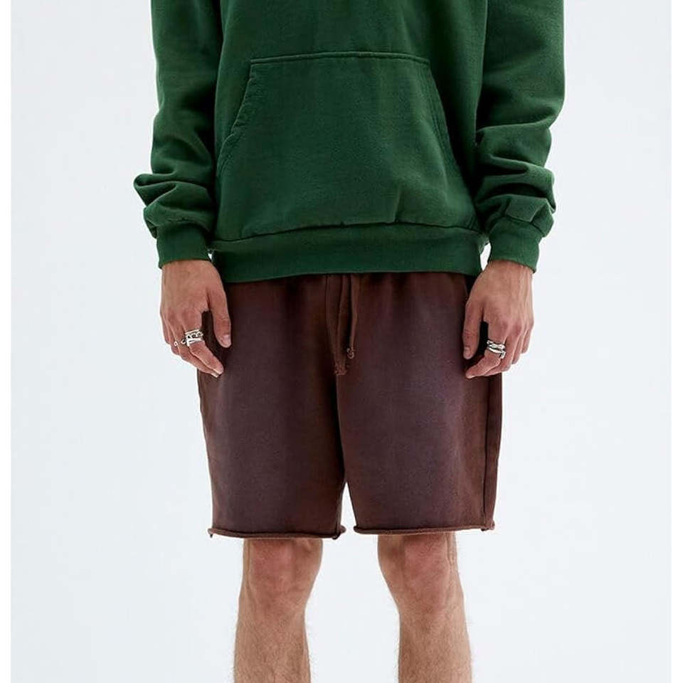 กางเกงขาสั้นผ้าย่นเป็นกรดของผู้ชายกางเกงขาสั้นโอเวอร์ไซส์ผ้าเฟรนช์เทอร์รี่วินเทจ