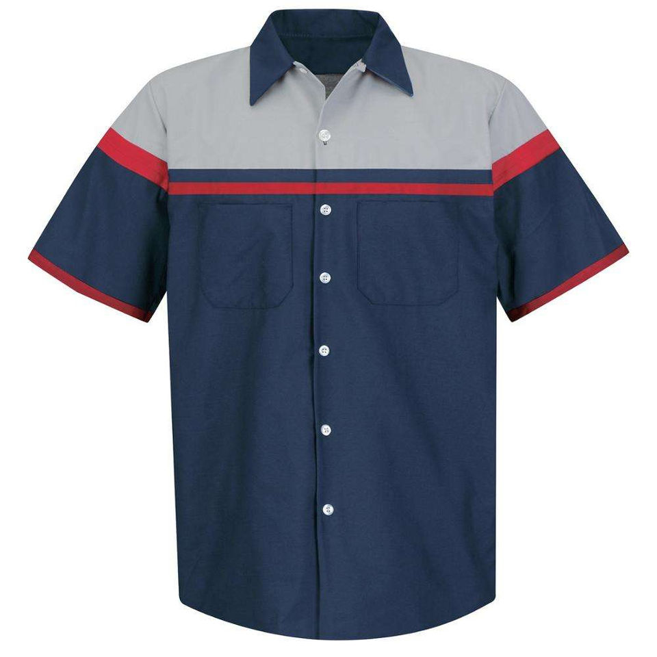 เสื้อเชิ้ตทำงานสำหรับผู้ชายเสื้อเชิ้ตช่างแขนสั้นผ้าโพลีเอสเตอร์ผ้าฝ้ายผสมแบบมีกระดุมสำหรับวิศวกรออกแบบได้ตามต้องการ