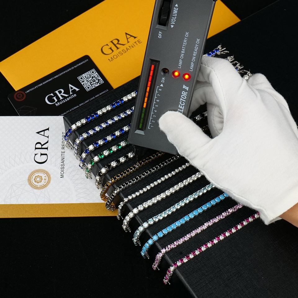 สร้อยข้อมือเทนนิสเพชรโมอิสซาไนต์สี VVS เงินแท้ 925 สำหรับผู้หญิง ราคาขายส่งตามสั่ง
