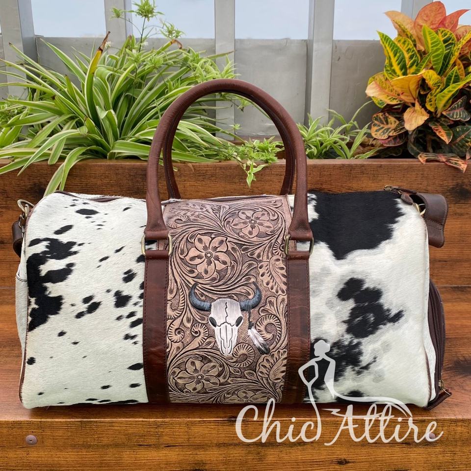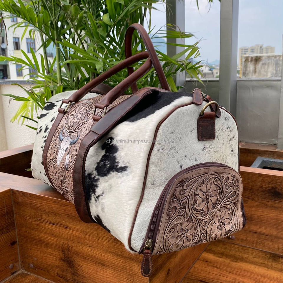 กระเป๋าดัฟเฟิลกระเป๋าเดินทางหนังวัวแท้สำหรับผู้หญิงกระเป๋าเดินทางข้ามคืนทำจากหนังวัวแท้