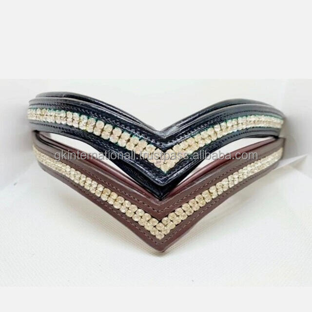 สายรัดคิ้วหนังม้าประดับคริสตัลใสสองแถวสำหรับม้าสายบังเหียนมีแผ่นหนังรูปตัว V ลึกตามสั่ง