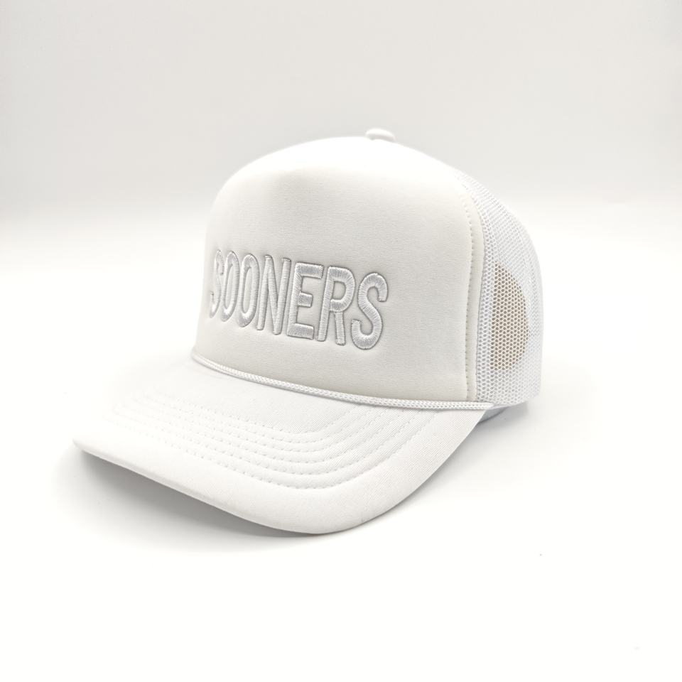 หมวกโฟมทรงทรัคเกอร์สีขาวแบบเรียบสำหรับผู้ชาย รับผลิตตามสั่งขายส่งแบบ OEM