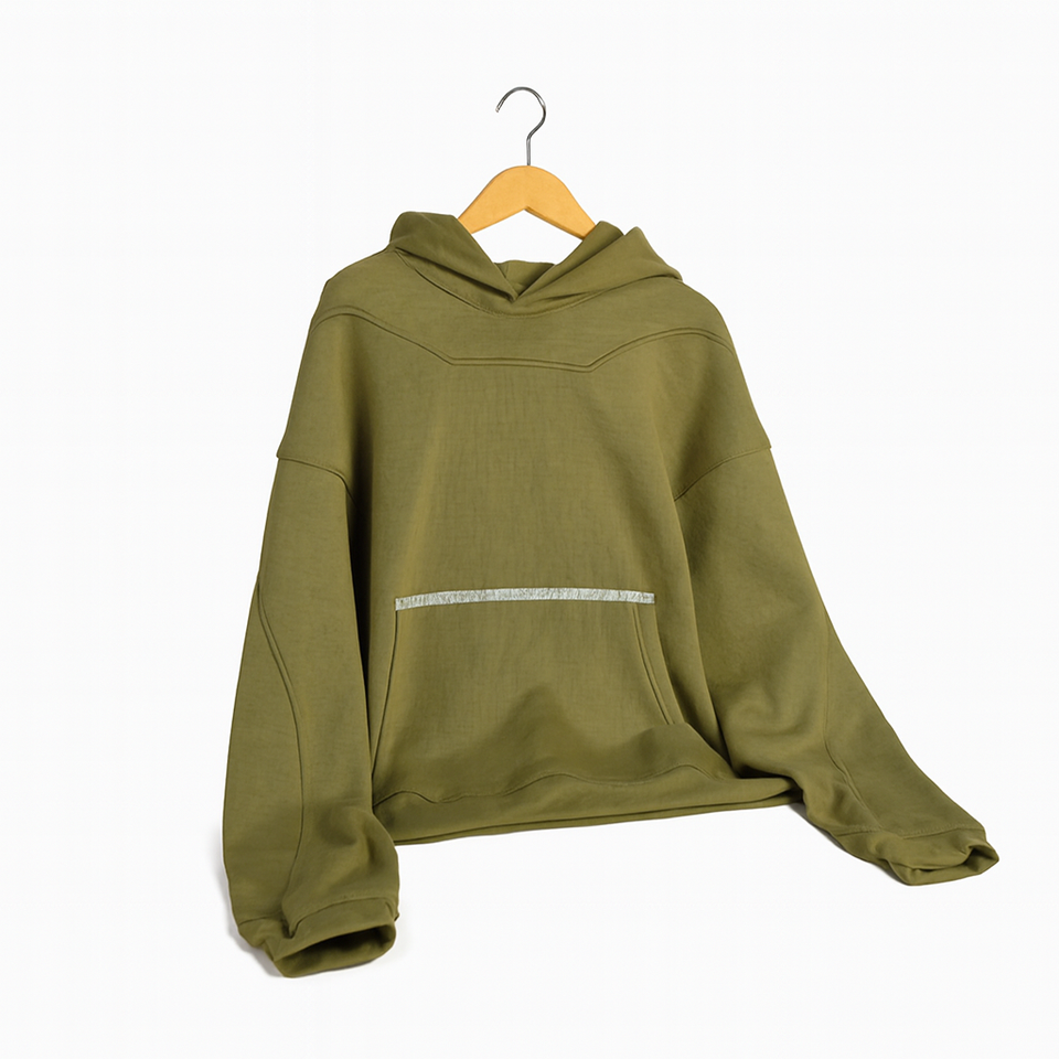 เสื้อฮู้ดดี้ผู้หญิงแฟชั่นฤดูหนาวแบบหนา สีเขียวมะกอก ดีไซน์กระเป๋าจิงโจ้ แถบสะท้อนแสง รับผลิตตามสั่งขายส่ง