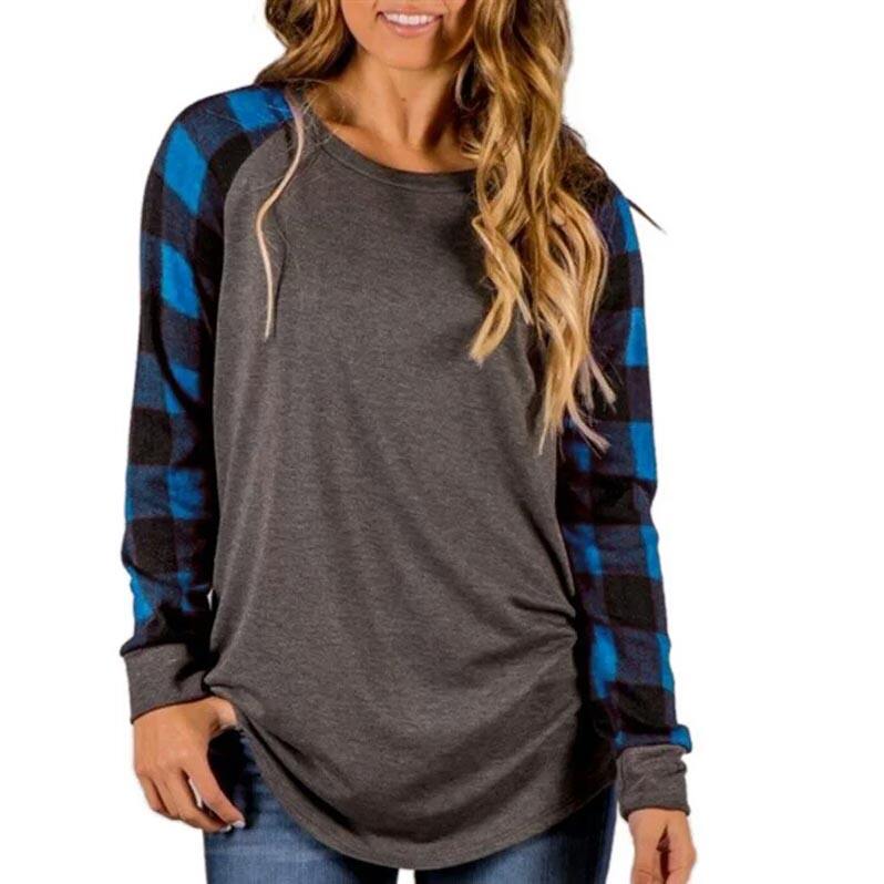 เสื้อยืดแขนยาวสำหรับผู้หญิงเสื้อลำลองคอกลมผ้า Raglan สำหรับฤดูใบไม้ร่วงฤดูหนาว
