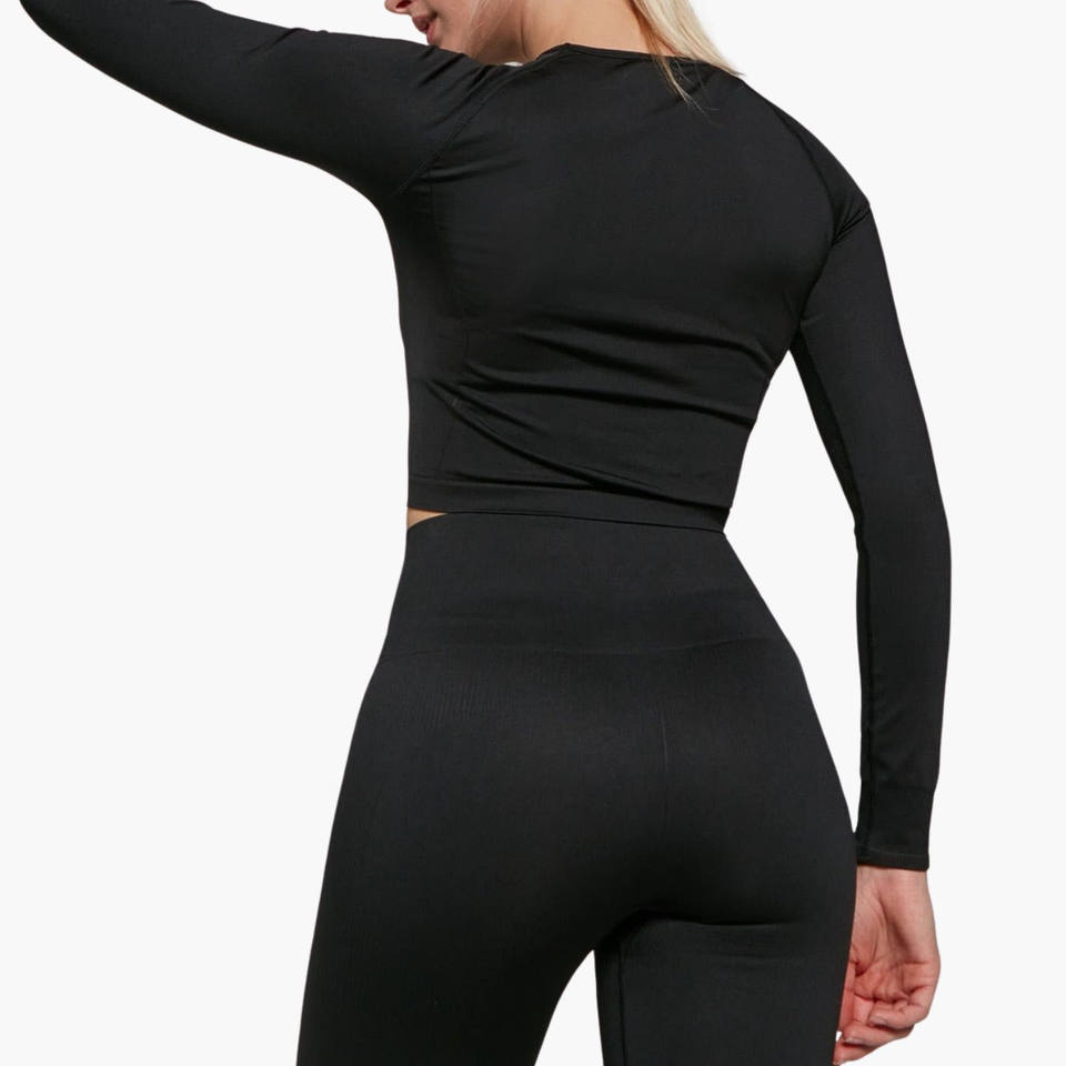 เสื้อยืดออกกำลังกายผู้หญิงแบบแห้งเร็ว คอกลม แขนยาว ทรงเข้ารูป สำหรับโยคะ ฟิตเนส ยิม ท็อปครอป รับผลิตตามสั่งขายส่ง
