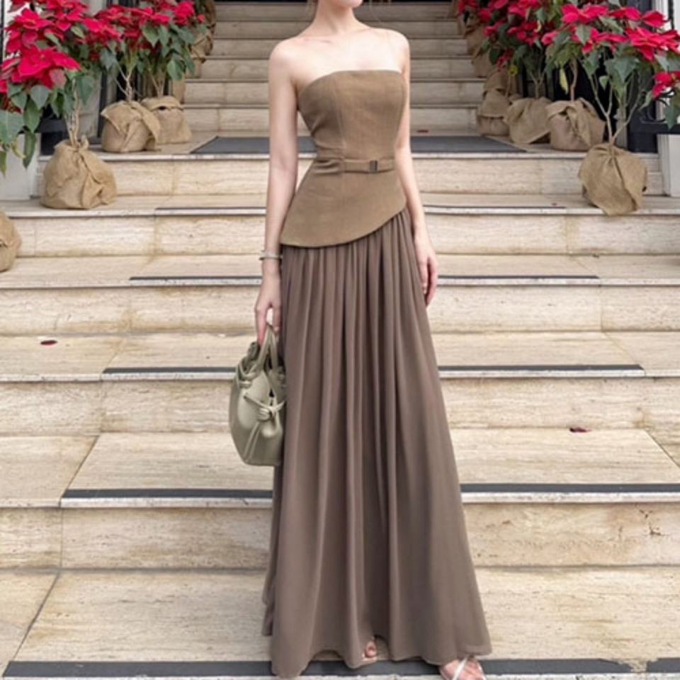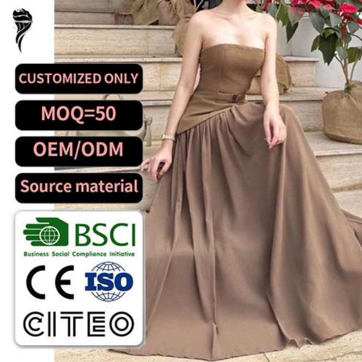 Custom Wholesale Women's Strapless Corset Patchwork Soft Back Zip up Maxi Dress Backless Sleeveless Evening Party Maxi Dress
