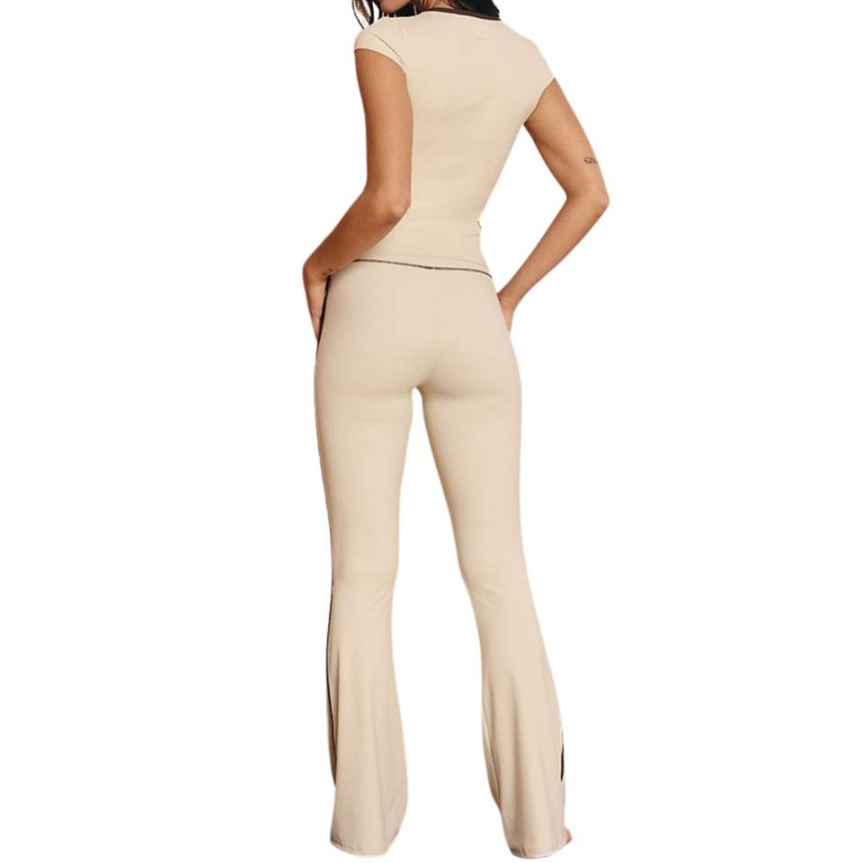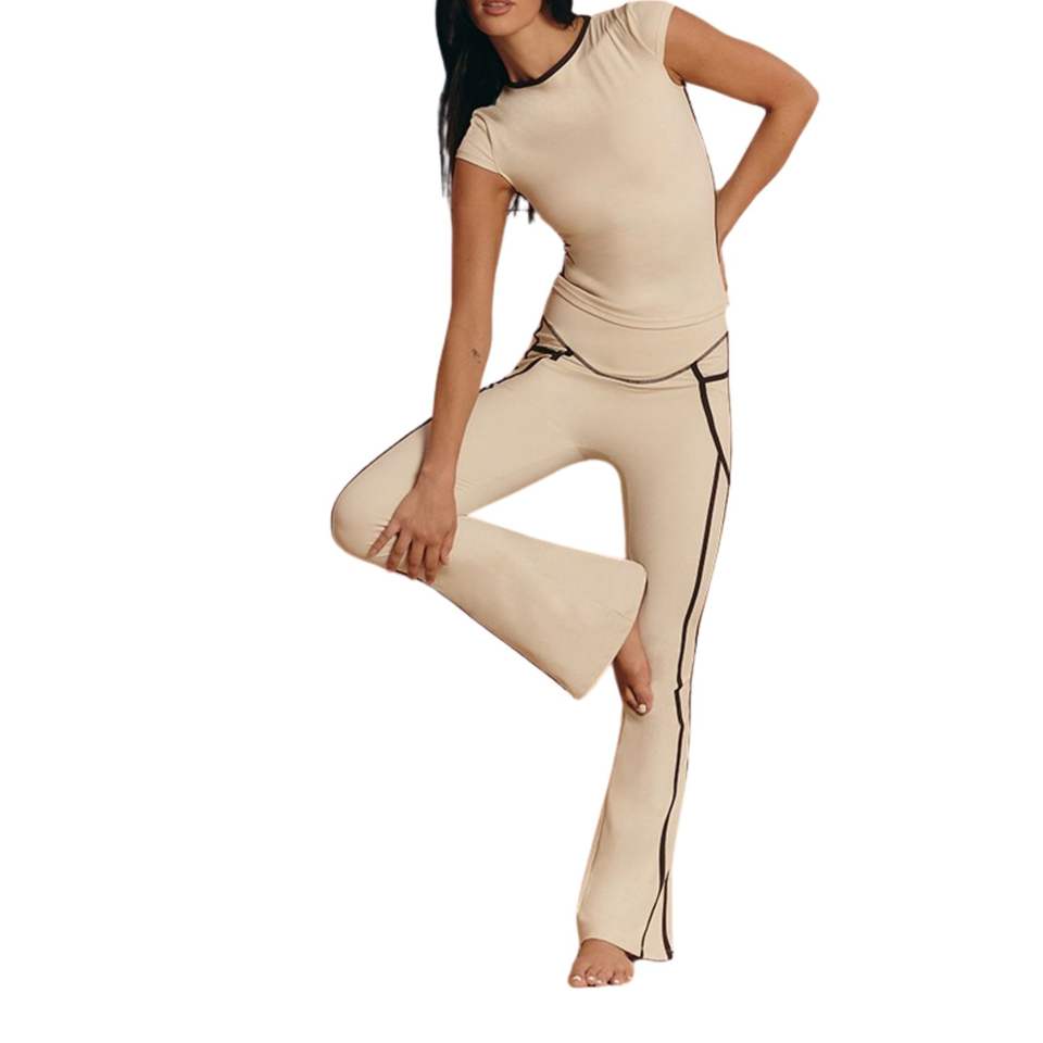 ชุดออกกำลังกายผู้หญิงแบบขายส่งสั่งทำพิเศษ 2 ชิ้น สีตัดกัน เสื้อกล้ามรัดรูปสำหรับเล่นกีฬา และกางเกงเลกกิ้งยกกระชับสะโพกแบบไขว้ ชุดโยคะ