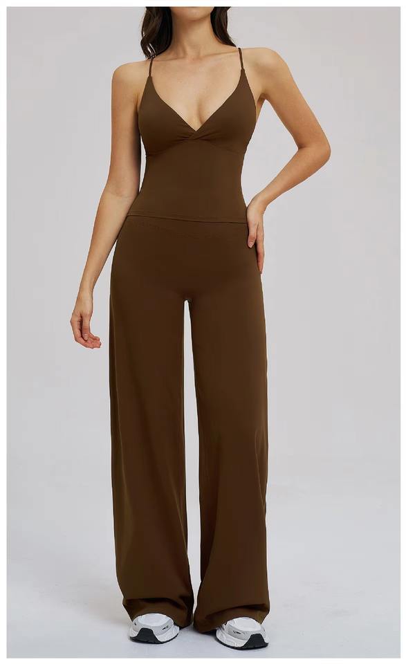 ชุดออกกำลังกายผู้หญิงแบบ 2 ชิ้นสั่งทำขายส่ง กางเกงโยคะเอวสูงยกกระชับสะโพก และเสื้อกล้ามสปอร์ตบราแบบ Racerback เข้าชุด