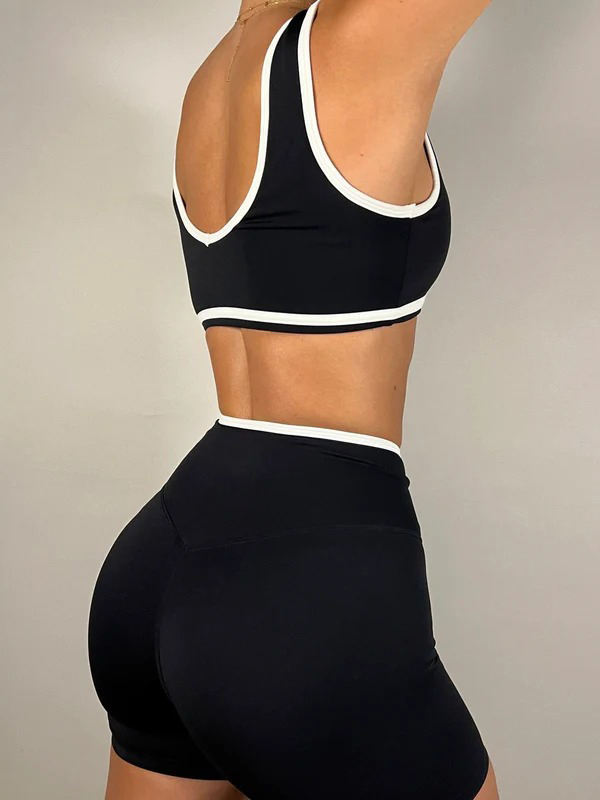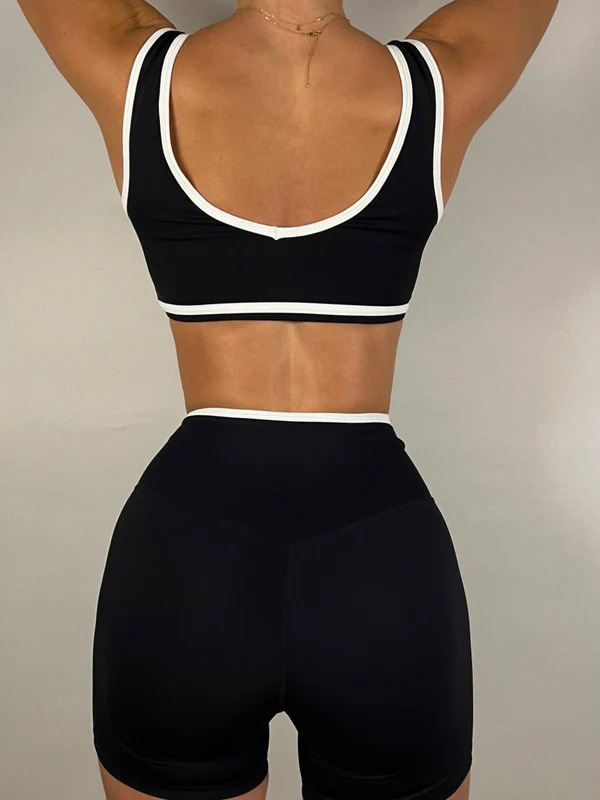 ชุดออกกำลังกายสำหรับผู้หญิงแบบขายส่ง ชุดบราออกกำลังกายแบบไขว้หลัง กางเกงขาสั้นเอวสูงยกกระชับสะโพก เหมาะสำหรับยิม วิ่ง โยคะ