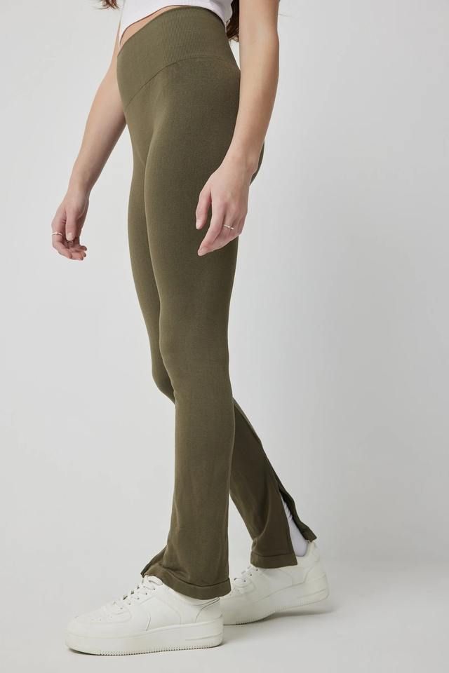 กางเกงเลกกิ้งออกกำลังกายเอวสูงสำหรับผู้หญิง ขายส่งตามสั่ง ผลิตจากไนลอนผสมสแปนเด็กซ์ ยืดหยุ่นได้ดี มีกระเป๋า ทรงขาบาน