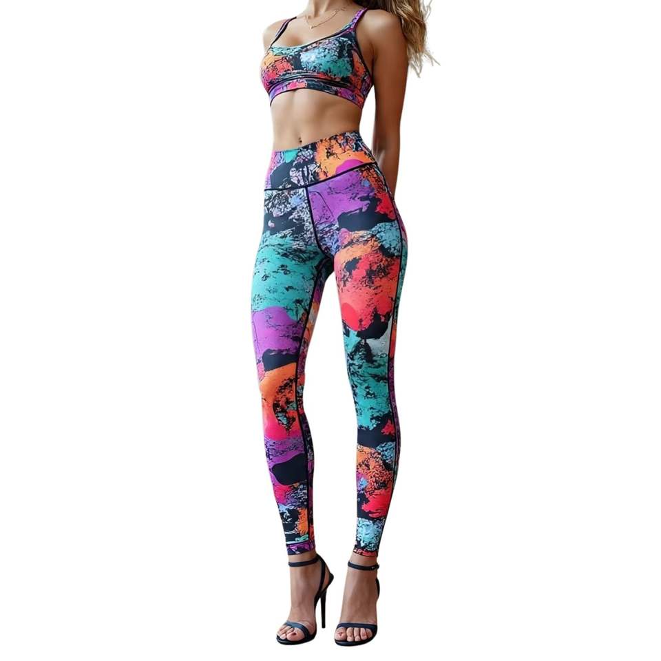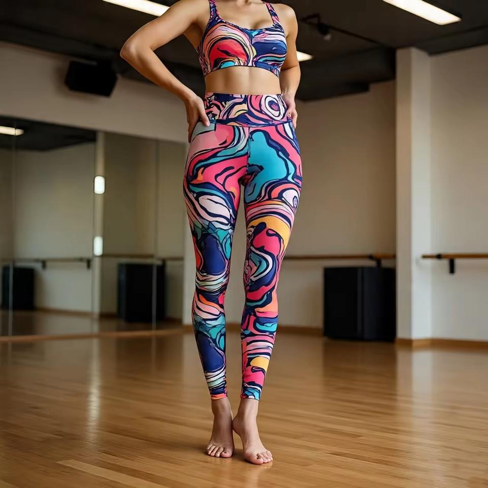 กางเกงโยคะเอวสูงสำหรับผู้หญิงแบบขายส่งพร้อมกระเป๋า รับออกแบบลายพิมพ์แบบ Sublimation กางเกงแห้งเร็ว