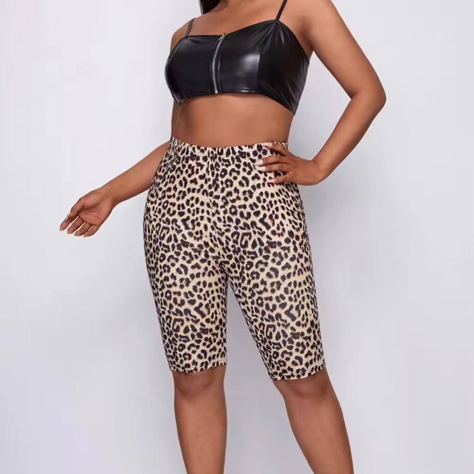 กางเกงขาสั้นโยคะลายเสือดาวสำหรับผู้หญิงสั่งทำขายส่ง เอวสูง ไร้ตะเข็บ ยกกระชับสะโพก กางเกงออกกำลังกาย