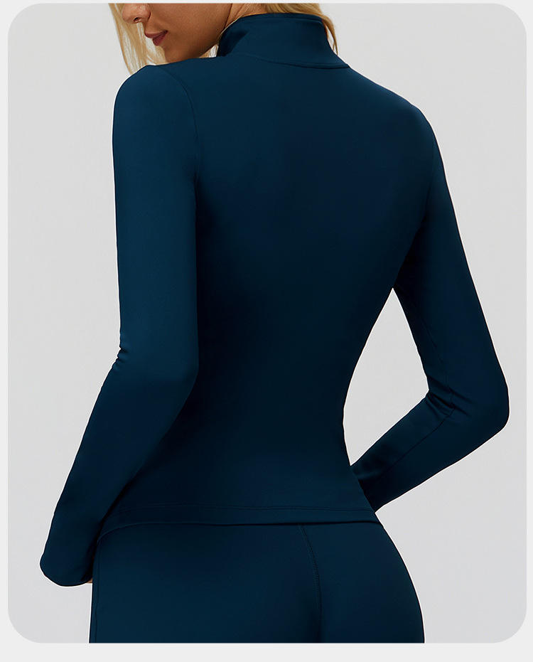 Custom Wholesale Womens Lightweight Gym Fitness Zipper Sports Top Breathable Tight Seamless Yoga Jacket Long Sleeve Plus Size