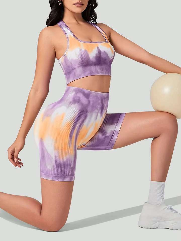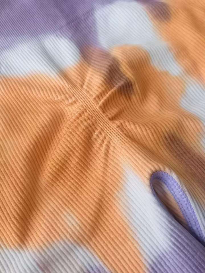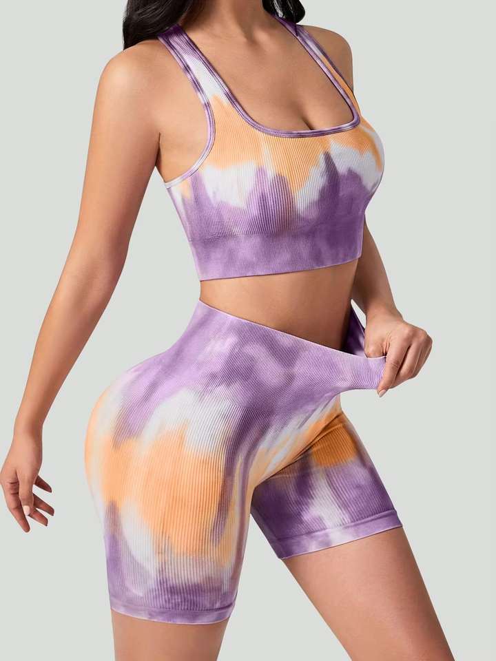 ชุดโยคะผู้หญิงแบบไร้ตะเข็บลายมัดย้อมสั่งทำขายส่ง เอวสูง แห้งเร็ว ระบายอากาศได้ดี ชุดออกกำลังกายสำหรับวิ่งและออกกำลังกาย