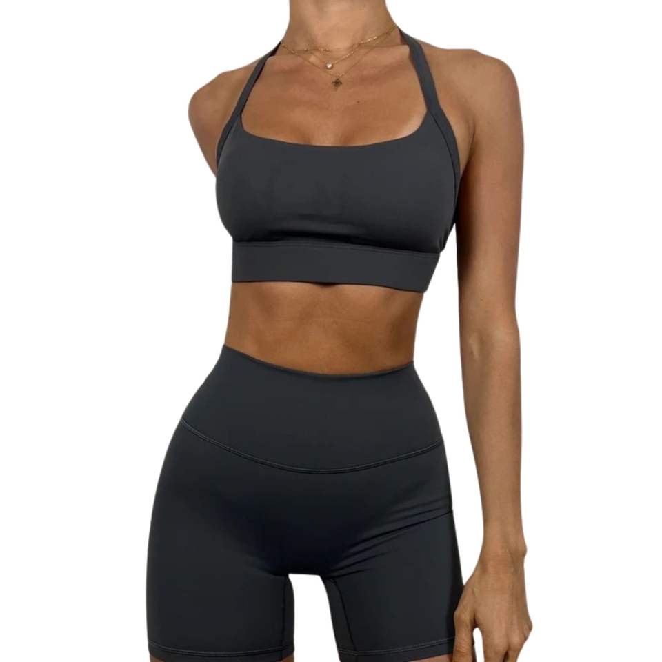 ชุดออกกำลังกายไร้ตะเข็บสำหรับผู้หญิงแบบขายส่ง ชุดเสื้อชั้นในกีฬาและกางเกงขาสั้น ชุดออกกำลังกาย ชุดวิ่ง ชุดโยคะ