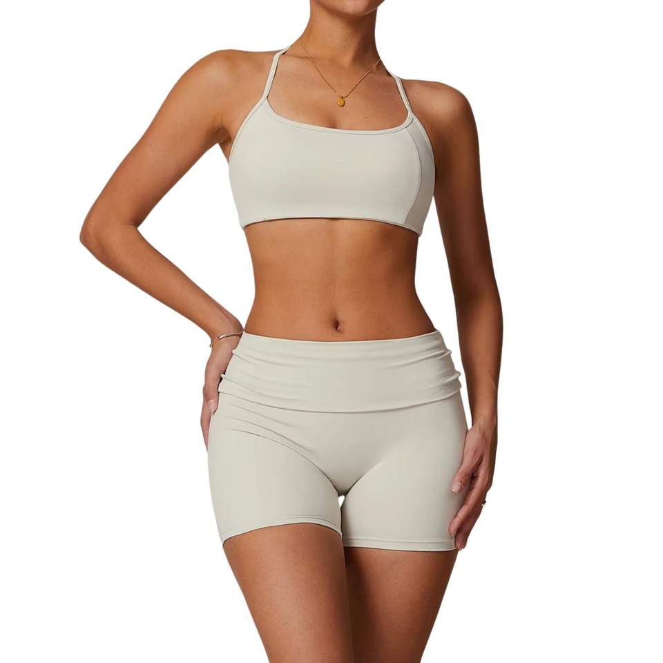 ชุดออกกำลังกายผู้หญิงแบบสองชิ้นสั่งทำขายส่ง เสื้อชั้นในโยคะแบบเรียบ & กางเกงเลกกิ้งเอวสูง ชุดออกกำลังกาย
