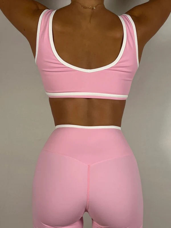 ชุดโยคะผู้หญิงขายส่งแบบกำหนดเอง เสื้อชั้นในกีฬาและกางเกงเอวไขว้รูปตัววี ชุดออกกำลังกายไร้รอยต่อสำหรับวิ่งและโยคะ