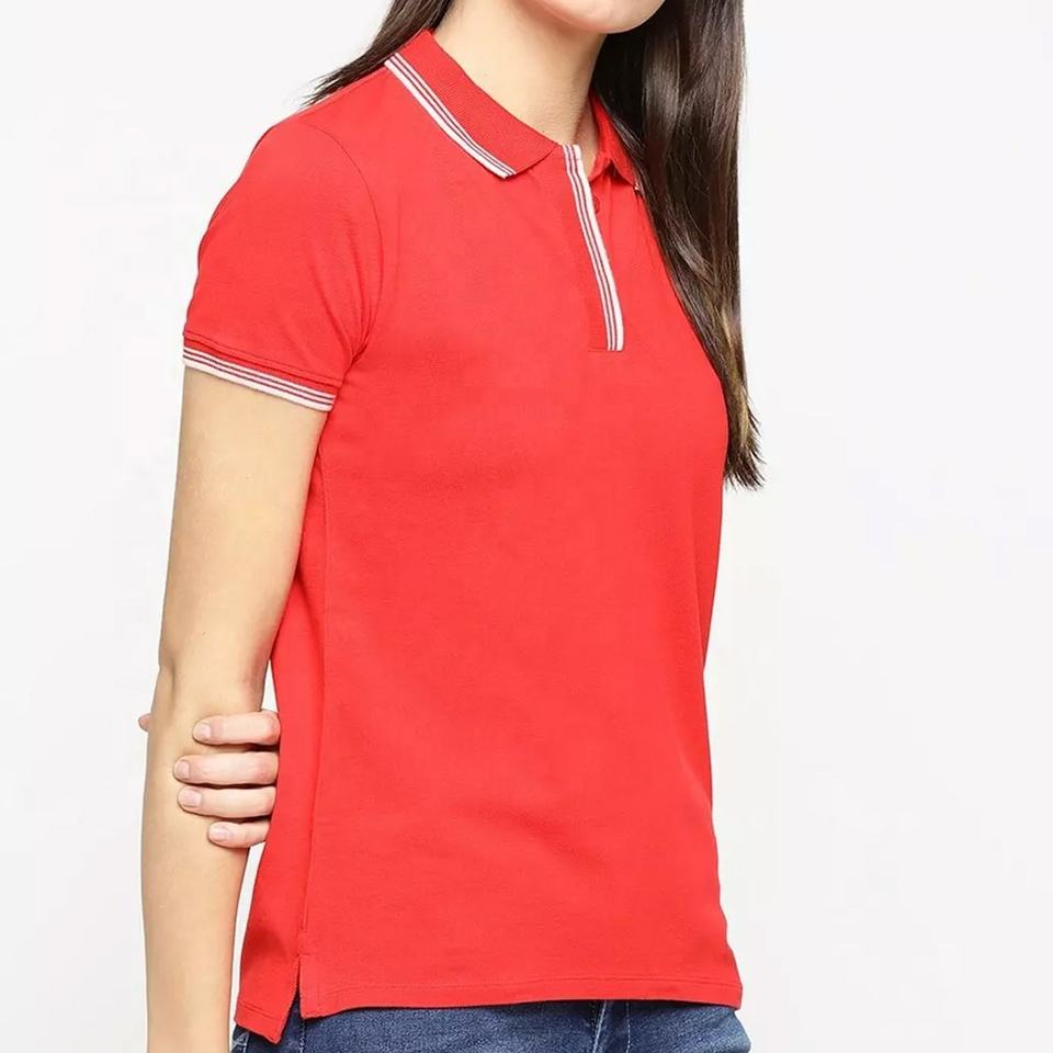 เสื้อโปโลผ้าฝ้ายระบายอากาศสำหรับผู้หญิงพิมพ์ลายสีทึบแบบลำลองกลางแจ้งสั่งทำฉลากส่วนตัวได้