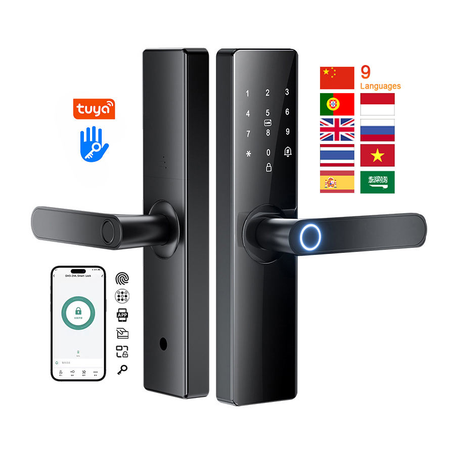 ระบบล็อคประตูอัจฉริยะแบบใช้แบตเตอรี่พร้อมมือจับ รองรับการสแกนลายนิ้วมือ หน้าจอสัมผัส เชื่อมต่อ Wifi ควบคุมผ่านแอป Tuya TTLock