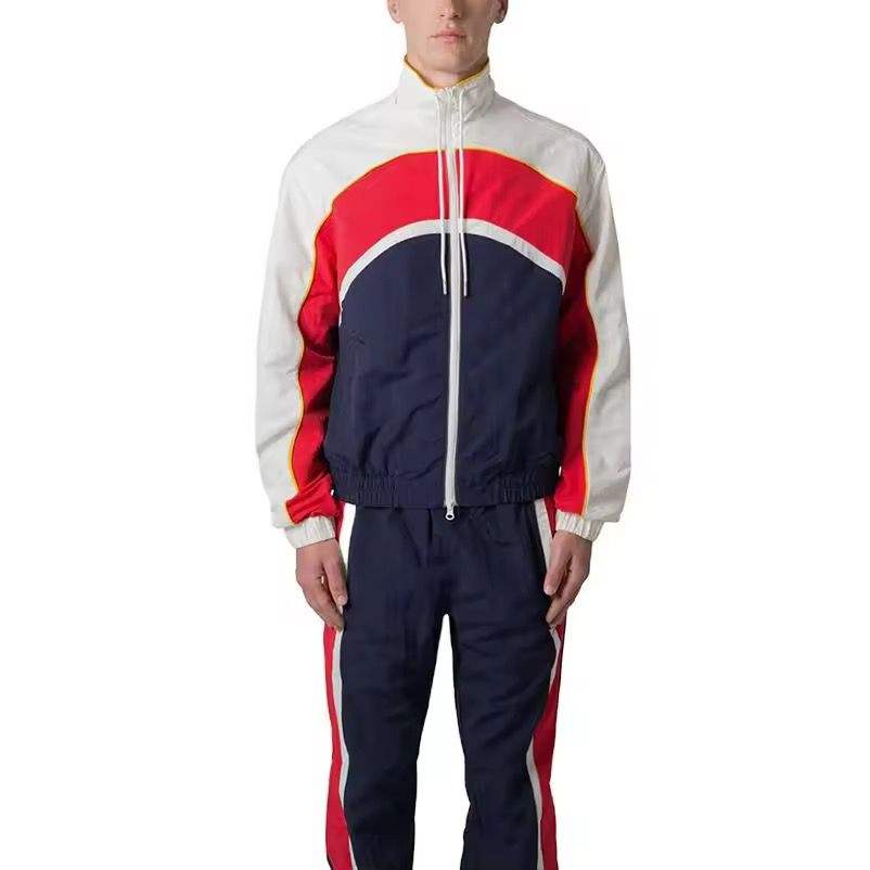 ชุดวอร์มผู้ชายผ้าซาตินปักลายสไตล์ฤดูใบไม้ร่วง พร้อมแถบสะท้อนแสง แห้งเร็ว สตรีทแวร์ มีฮู้ด